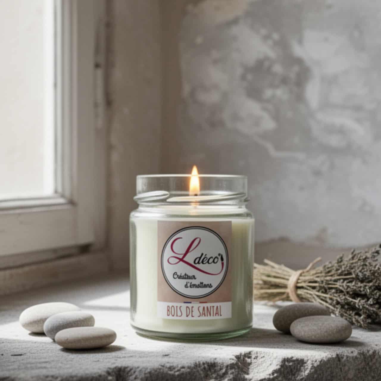 - Parfum : Bois de Santal — boisé, chaud, envoûtant · Parfum Grasse · Sans CMR · Conforme IFRA